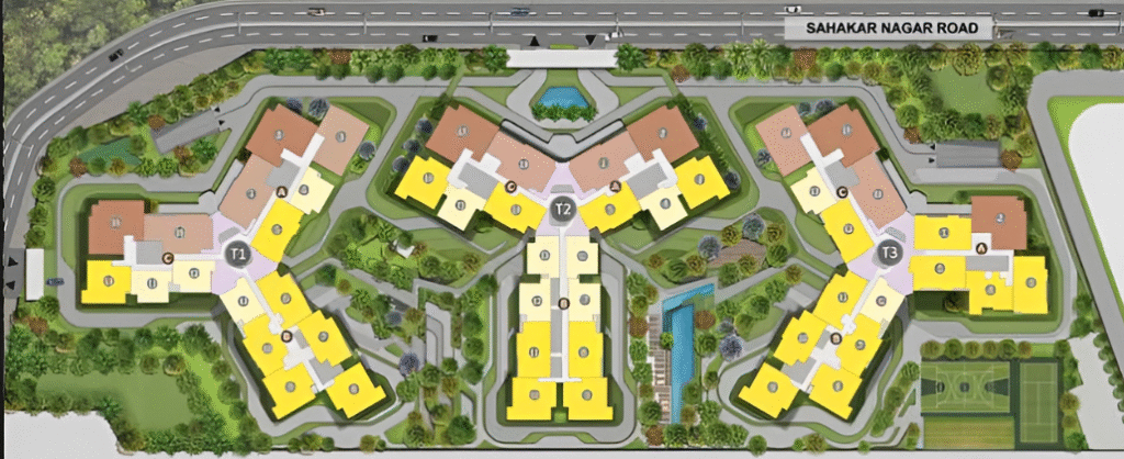 Towers with contemporary architecture and optimal north-south orientation. Every residence is designed with expansive balconies, ensuring panoramic views and abundant natural light. Well-planned layouts maximize space efficiency, while cross-ventilation ensures a refreshing indoor ambiance. The exclusive 3 & 4 BHK homes redefine urban luxury, offering a seamless blend of elegance and functionality in a vibrant community.